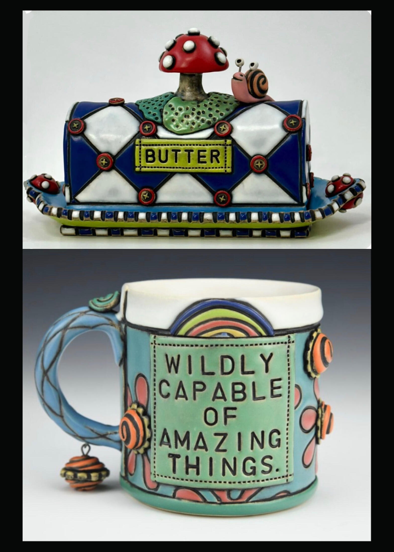 Juliann’s lively handbuilding workshops explore slab-built pottery with a playful twist, where strong form and function meet bold surface design. Participants learn practical construction techniques while experimenting with handmade stamps, pattern, and color to create expressive, one-of-a-kind pieces. Along the way, makers build confidence while discovering new ways to add personality and narrative to their work. Expect skill-building, creative freedom, and a joyful studio energy that encourages ideas to run wild.