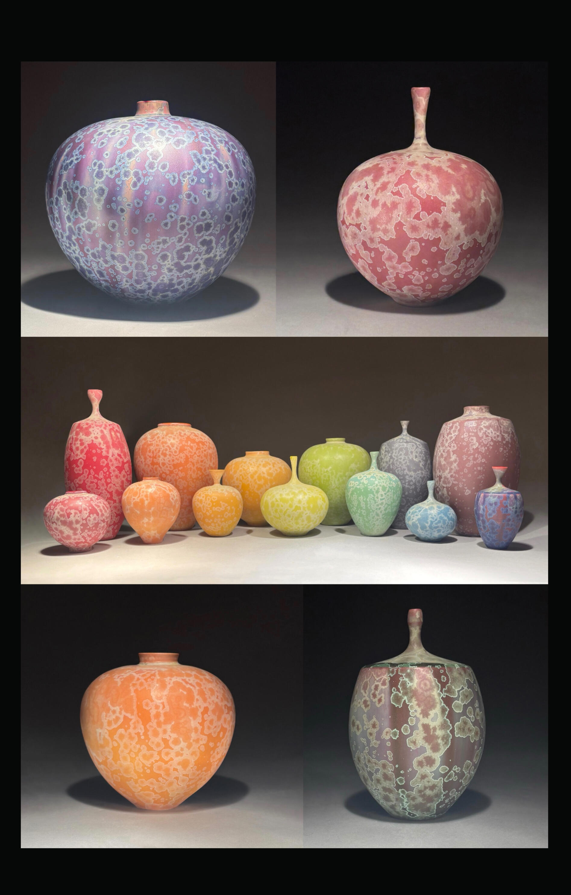 Andrew Krueger offers tailored workshops on throwing dramatic bottles and vases with a sense of breath and/or an introduction to crystalline glazing. In a bottle workshop, students can expect to learn to throw and trim porcelain bottles with exaggerated features like narrow feet, narrow necks, and large, inflated bellies.